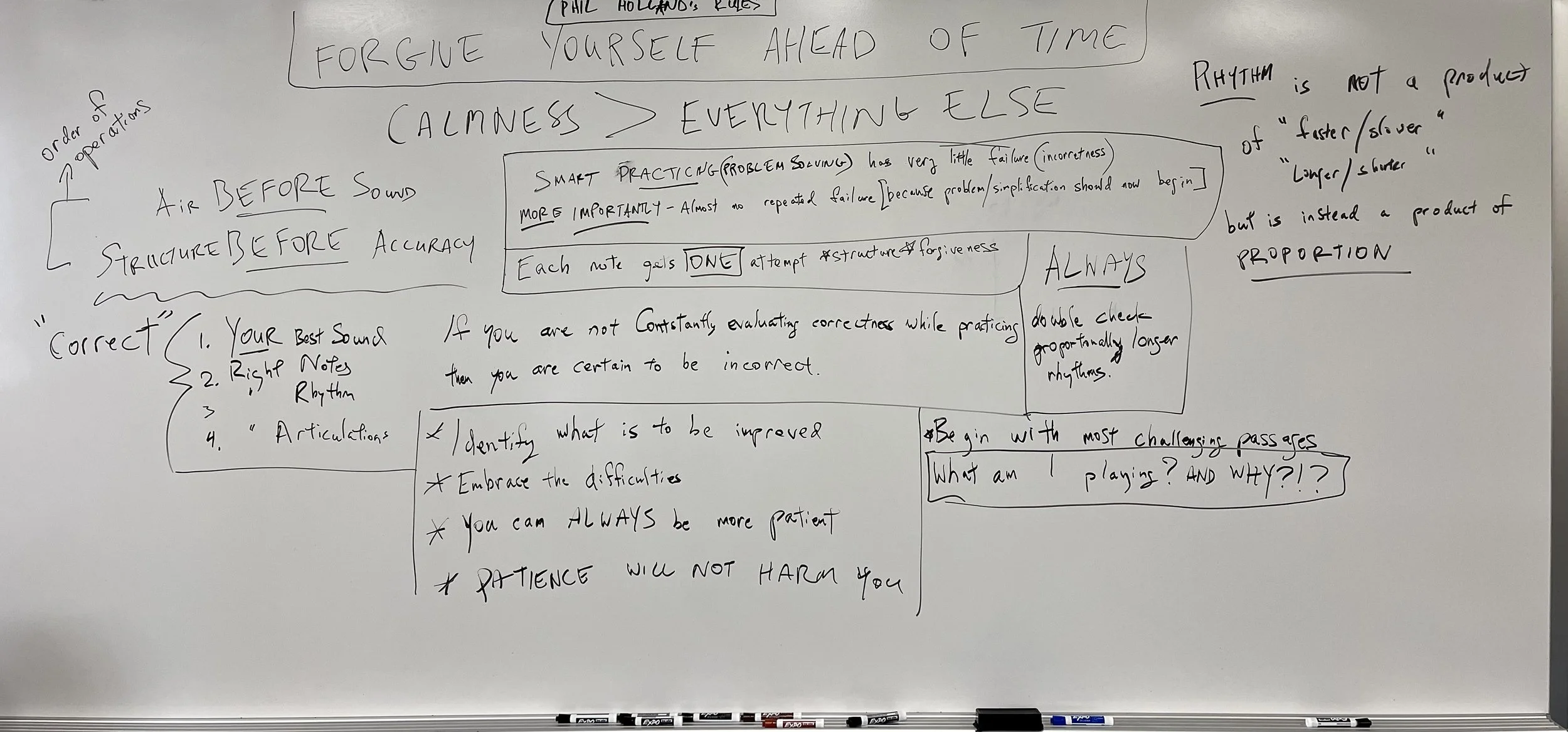 There’s a mentality running beneath his approach, the kind of thing that gets stuck in your head even when you pack your instrument away for the last time. The way I look at it, it’s about moments. It’s about preparing the right way, with the right mindset, for the right amount of time, and then pouncing on very clear moments with the control and confidence afforded to you by that preparation. Phil’s philosophy has helped me conquer nerves and stage fright, it has shaped the way I approach complex problems, and, most importantly, it has transformed my definition of “success.” Those ideas extend far beyond a three-valve metal tube.